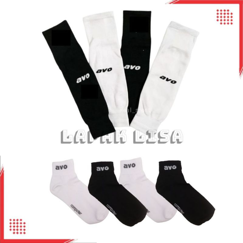 Paket Kaos Kaki Bola Sambung dan Kaos Kaki Sport Motif AVO Warna Hitam dan Putih