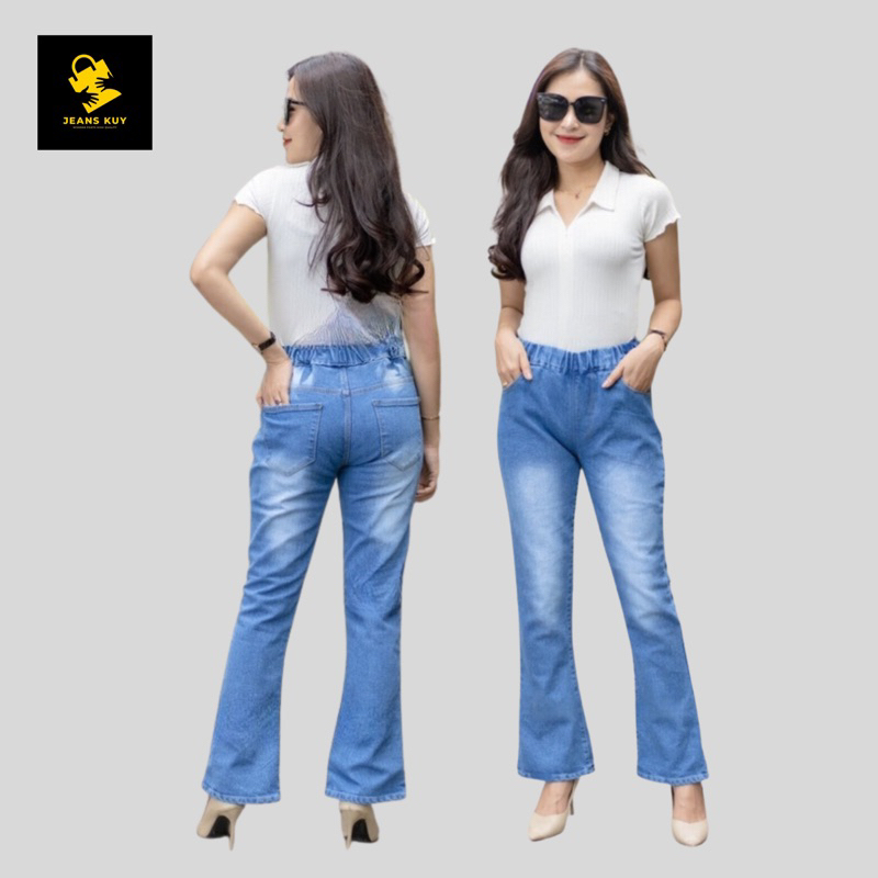 Jeanskuy - Celana Jeans Wanita Cutbray Pinggang Karet