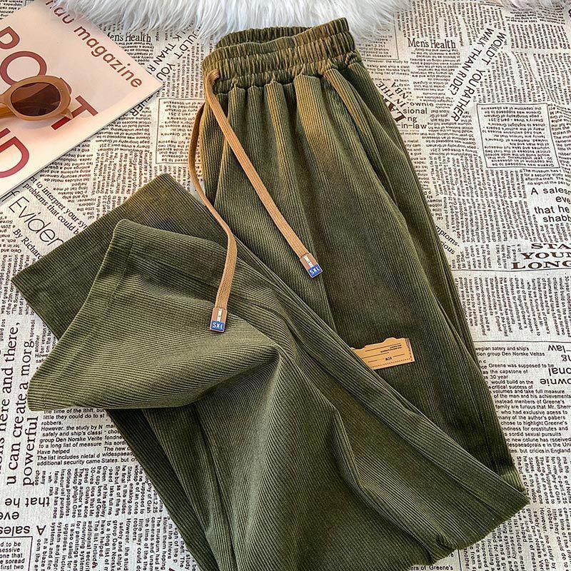 GDTima Celana Wanita Corduroy Pants Pinggang Elastis High Waist