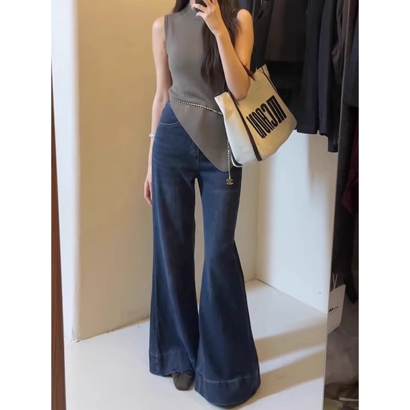 lulu-jeans Highwaist Celana Cutbray Jeans Wanita Biru tua Import--Denim melar,Panjang
