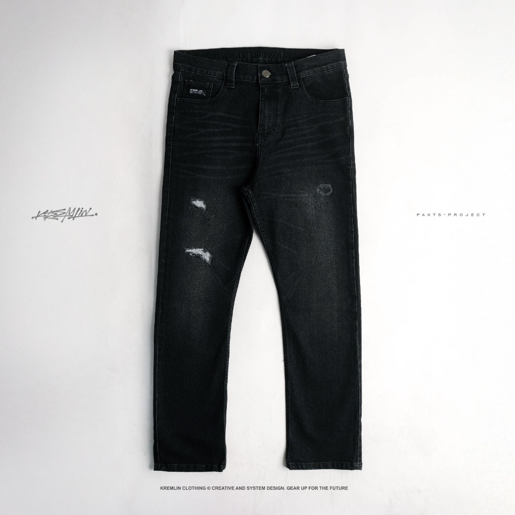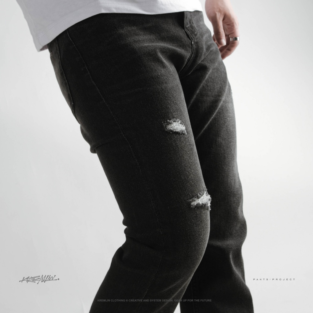 Celana Slim Fit Jeans Ripped Denim Wash Ash Black - Sendai