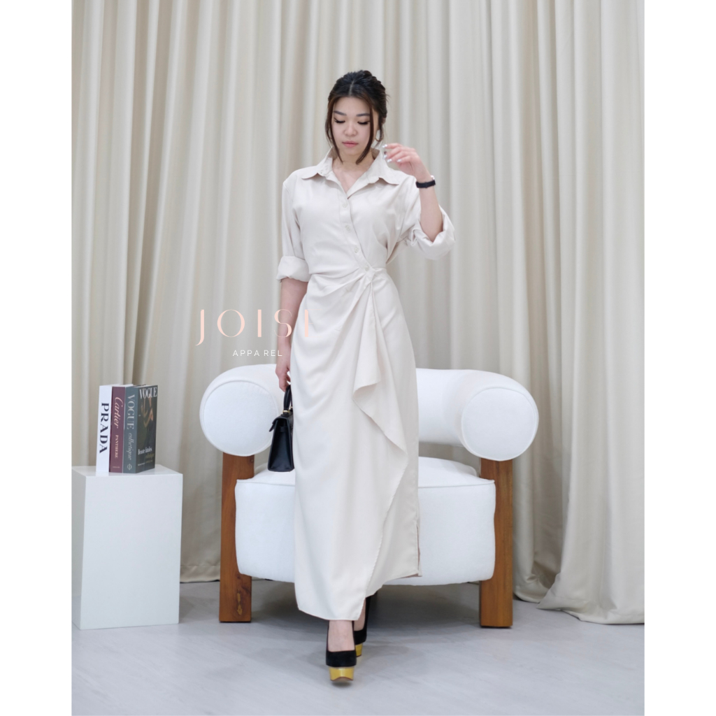JOISE - Aurora Flare Asymmetric Long Dress / Dress Kancing Maxi Casual Polos Twill