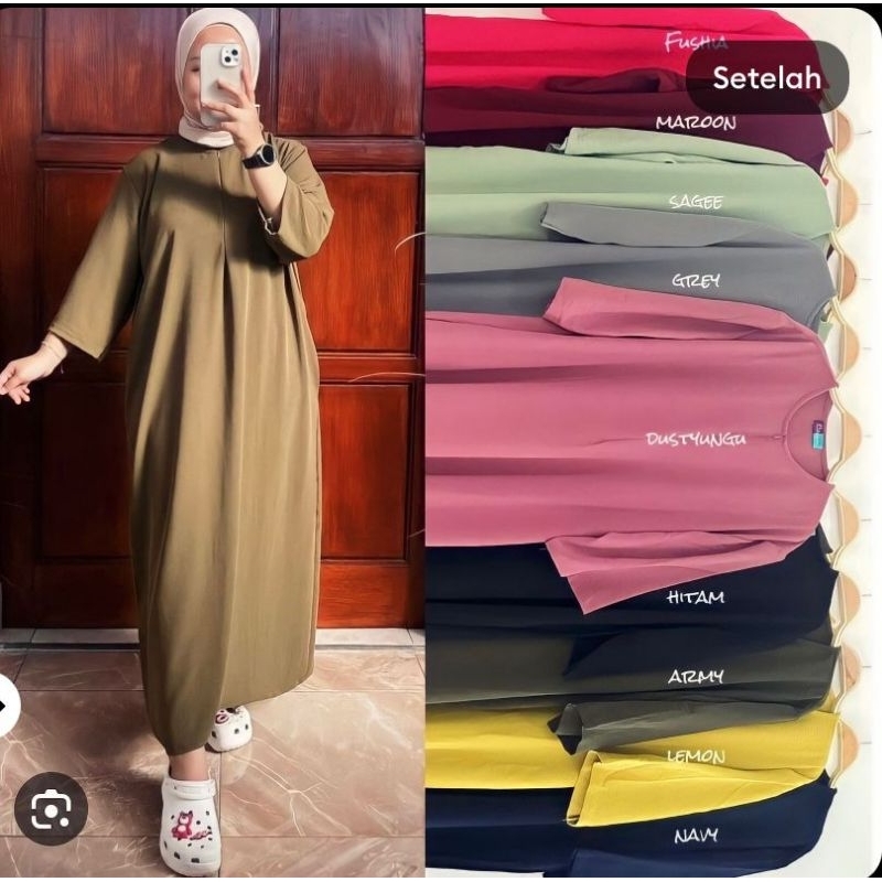 Dress Aurel Gamis Cringkle Airflow Busui Premium | Zea Long Dress Wanita lengan 3/4