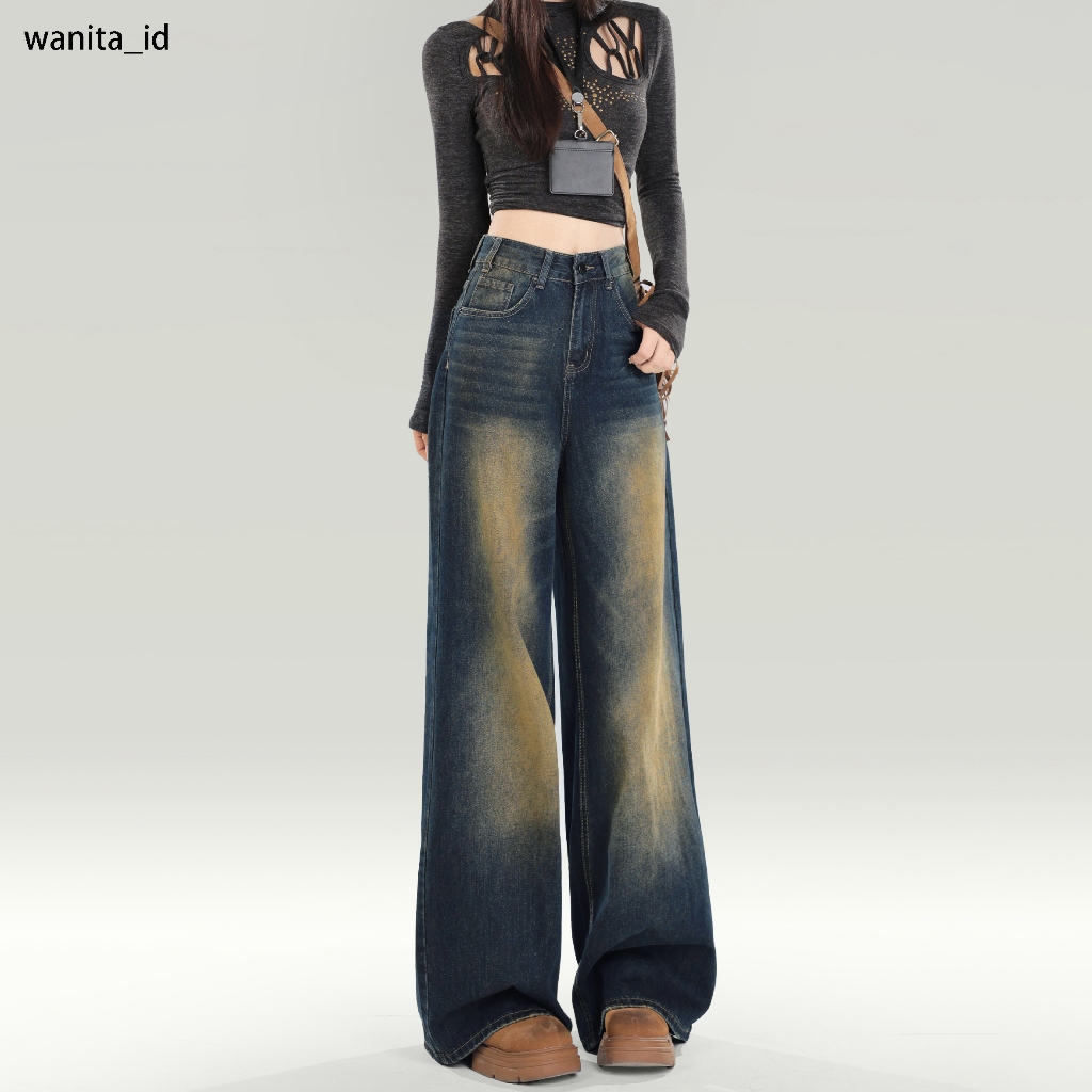 Vintage Jeans Wanita Celana Kulot / Straight Jeans Wanita Celana Baggy Pants Highwaist