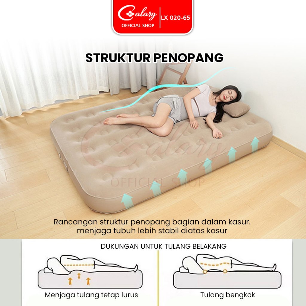CALARY Kasur Angin Tiup 200x154x43cm Camping Rumahan Multifungsi Matras Kasur Pompa door Inflatable Bed 020 65