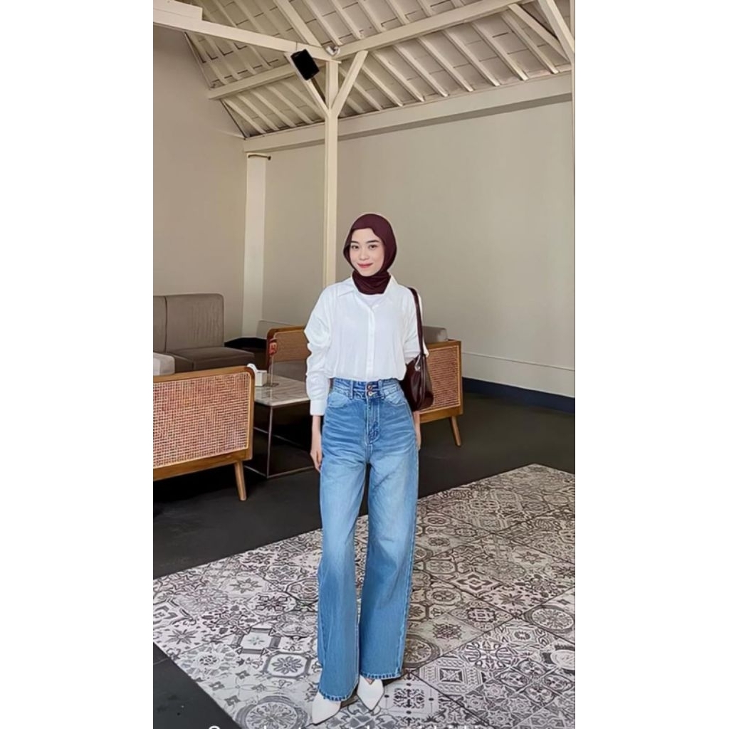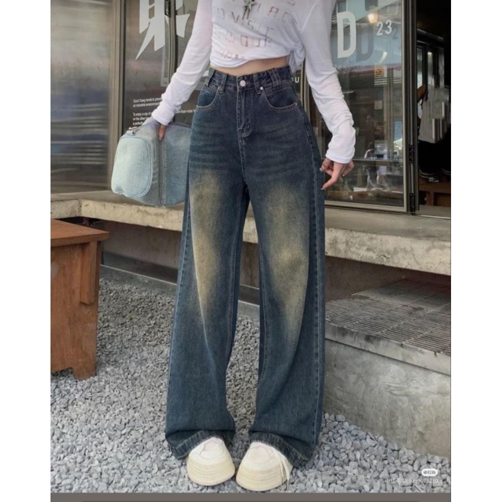 Remorus - Celana Kulot Jeans Highwaist Loose - Korean Baggy Jeans - Celana Gombrong Jeans