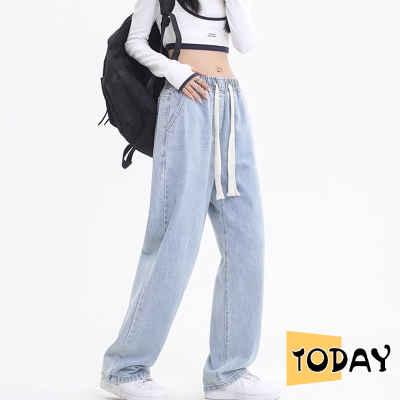 VV - Celana jeans wanita korean style celana jeans pinggang karet celana oversize wanita baggy pants celana kulot jeans premium