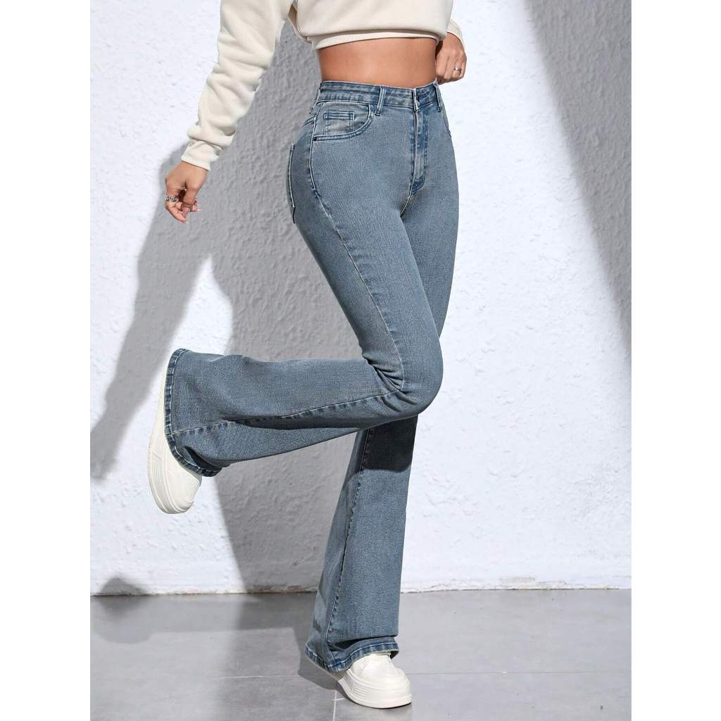 CELANA CUTBRAY JEANS BAHAN STRETCH MELAR MODEL FIT AND FLARE PANTS PINGGANG HIGHWAIST BAHAN TEBAL MELAR PANJANG 100CM