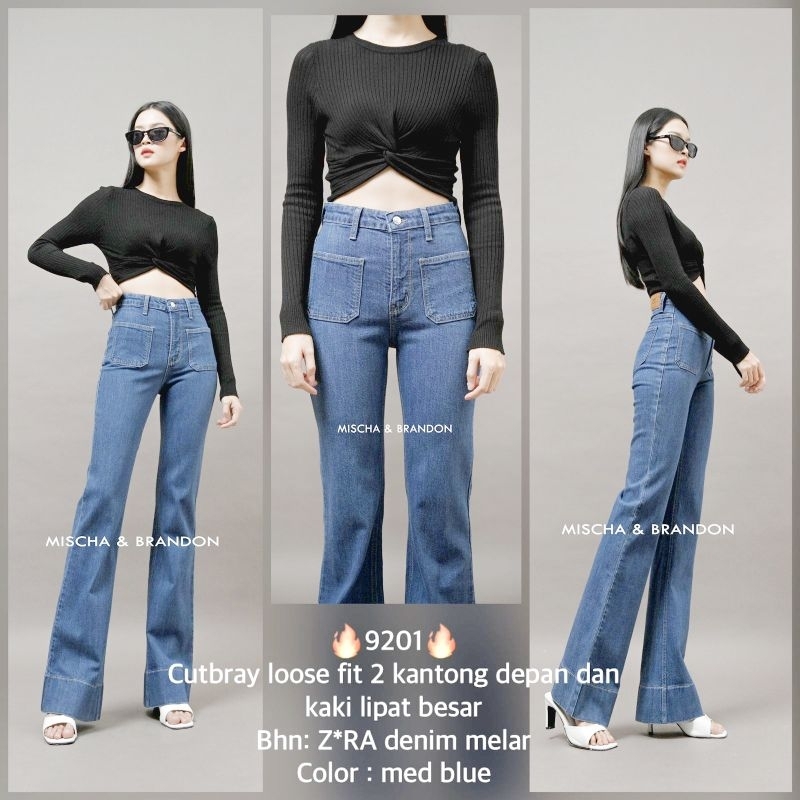 M&B JEANS Celana Panjang Wanita Jeans Cutbray Loose Fit Kantong Segi Depan