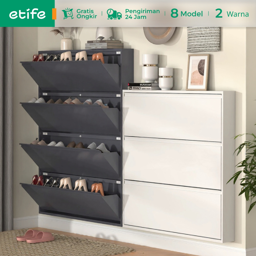 E TIFE Rak Sepatu Susun Besi Tertutup 3 4 Layer Kuat Tebal Lemari Sepatu Minimalis Rak Sepatu Susun Besi