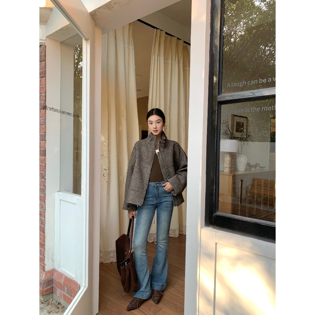 Lassie Alpha J79 ready stok Jeans Wanita Model Cutbray Highwaist Color Blue Retro Stretchy Material