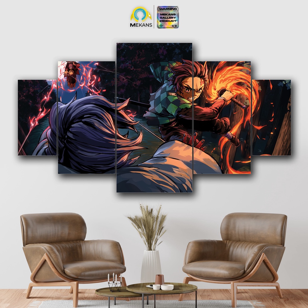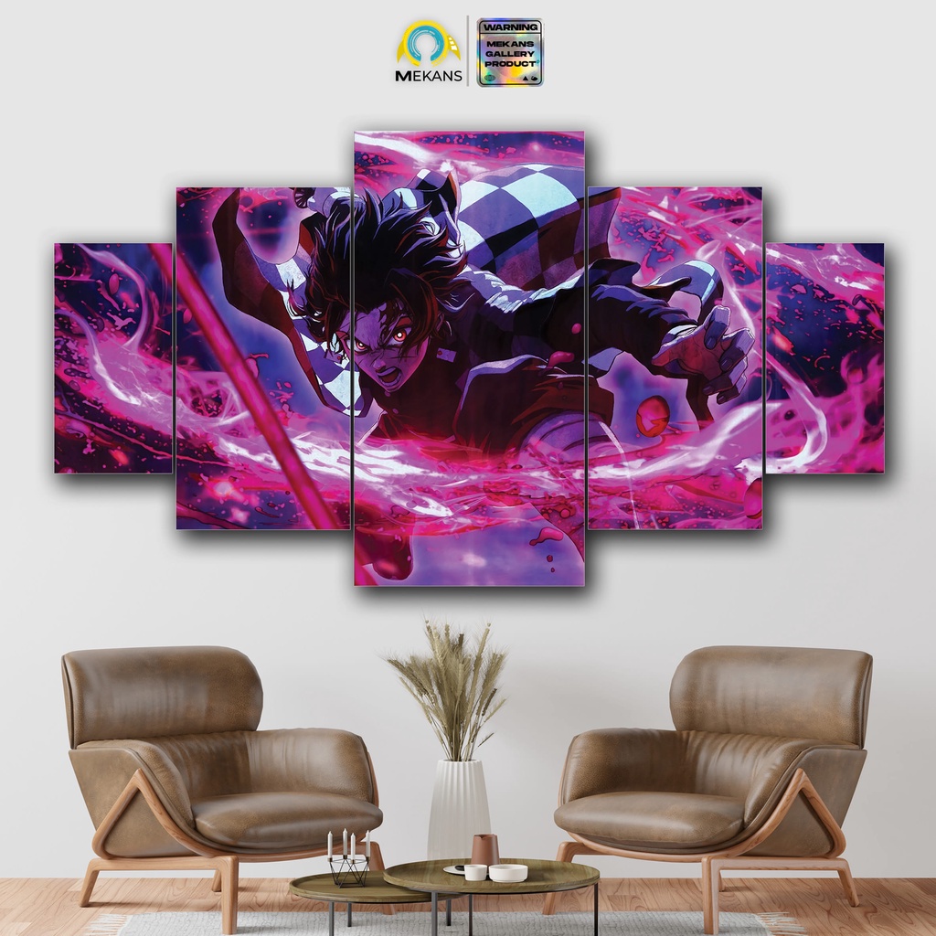 MEKANS 1 SET Pajangan Hiasan dinding DEMON SLAYER TANJIRO Poster Kayu Wall Decor 5pcs