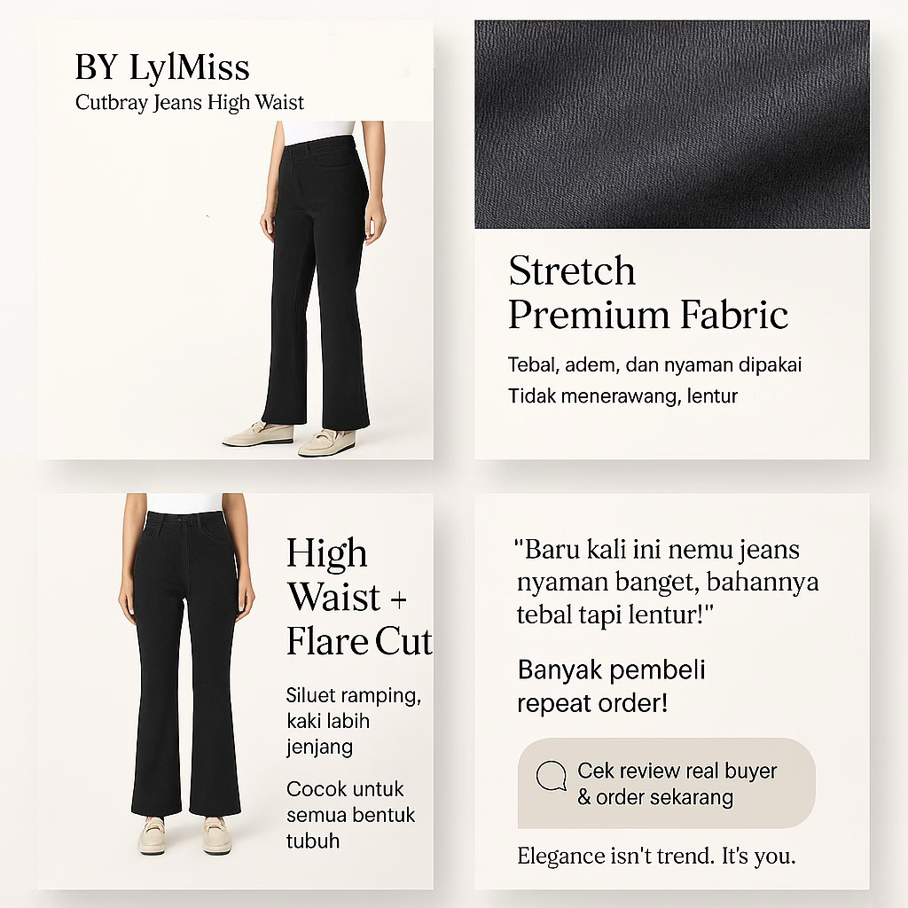 HW Cutbray Jeans Wanita – Retro Flare Stretch Tebal Kekinian | Celana by LylMiss