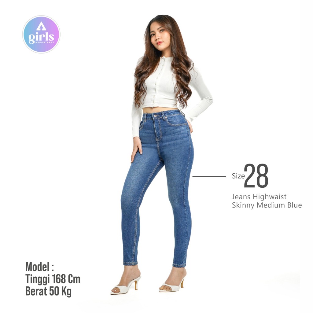 Aerostreet Highwaist Skinny Jeans Lucia Medium Blue 1F000