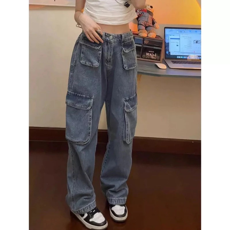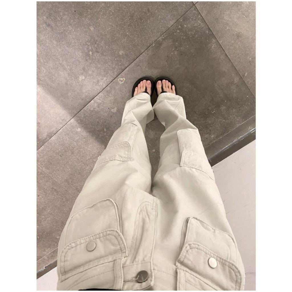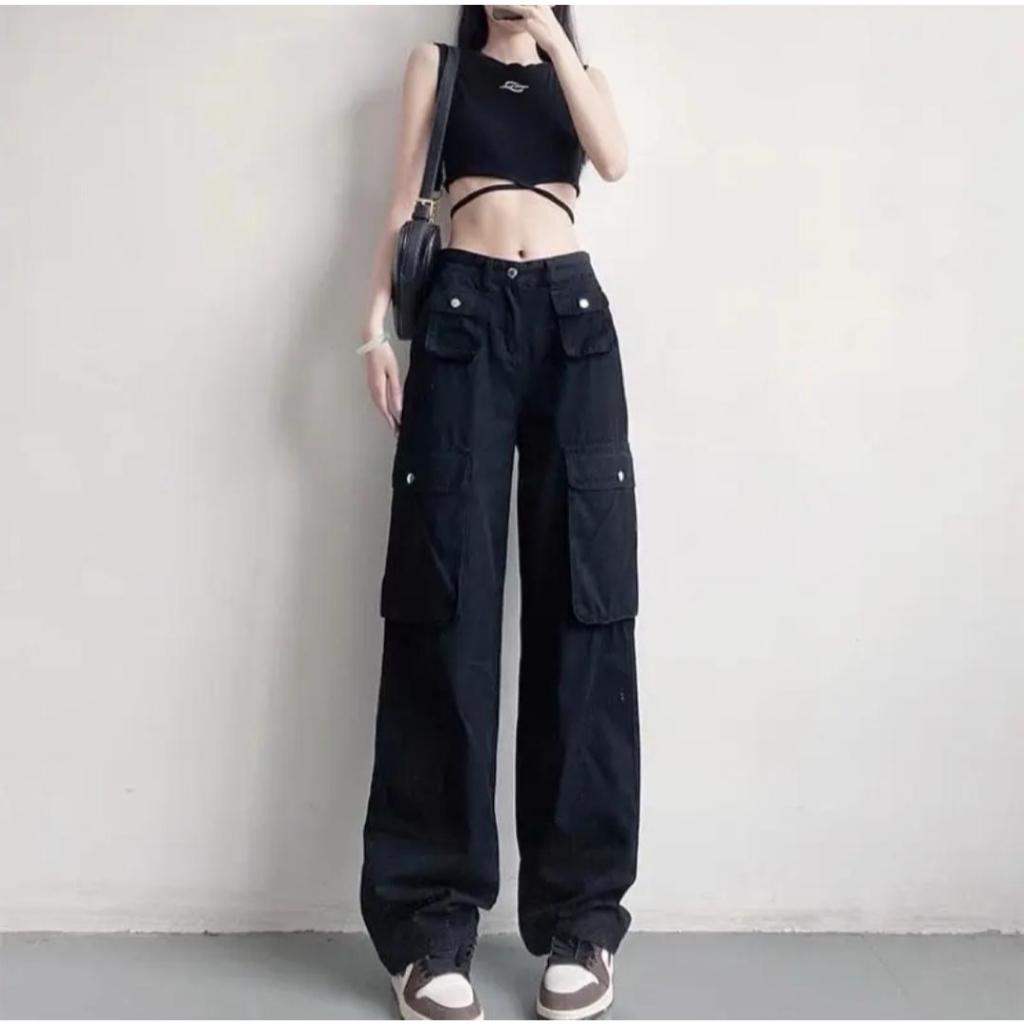 Cargo Denim Pasir Putih Highwaist Loose Celana Jeans Wanita Korea(realpict)