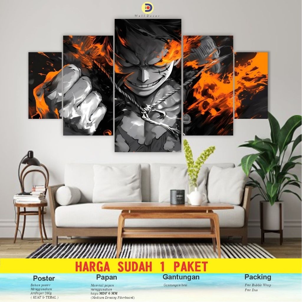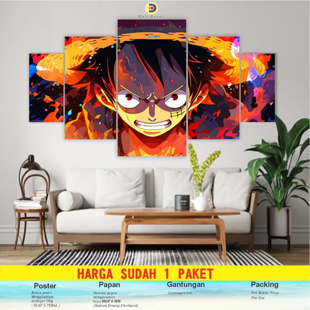 CIMON 1Set Poster Kayu Anime Onepiece Pajangan hiasan dinding LUFFY 5pcs