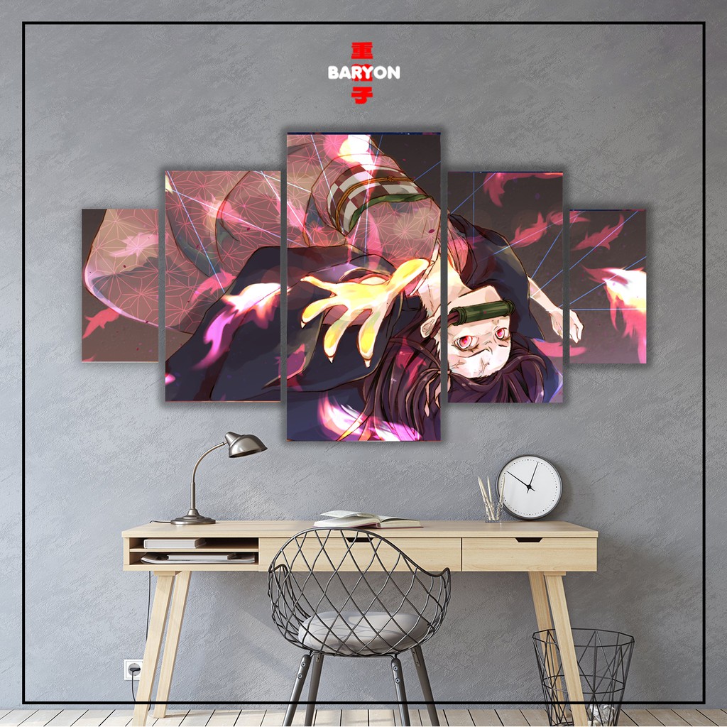 BARYON Wall Decor DEMON SLAYER NEZUKO 1 Set Hiasan Dinding Poster Kayu Pajangan Kamar Anime 5pcs