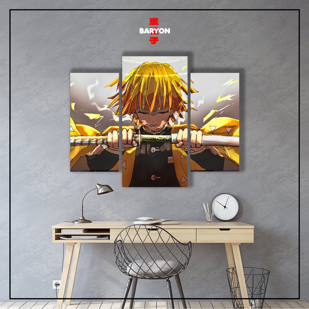 BARYON Wall Decor DEMON SLAYER Hiasan Dinding 1 Set Poster Kayu Pajangan Minimalis Anime 3pcs