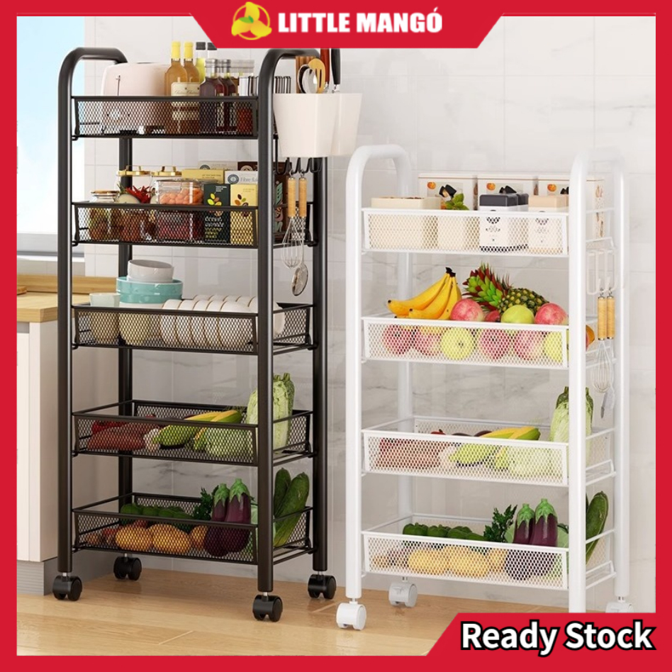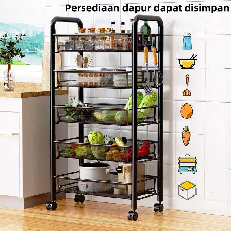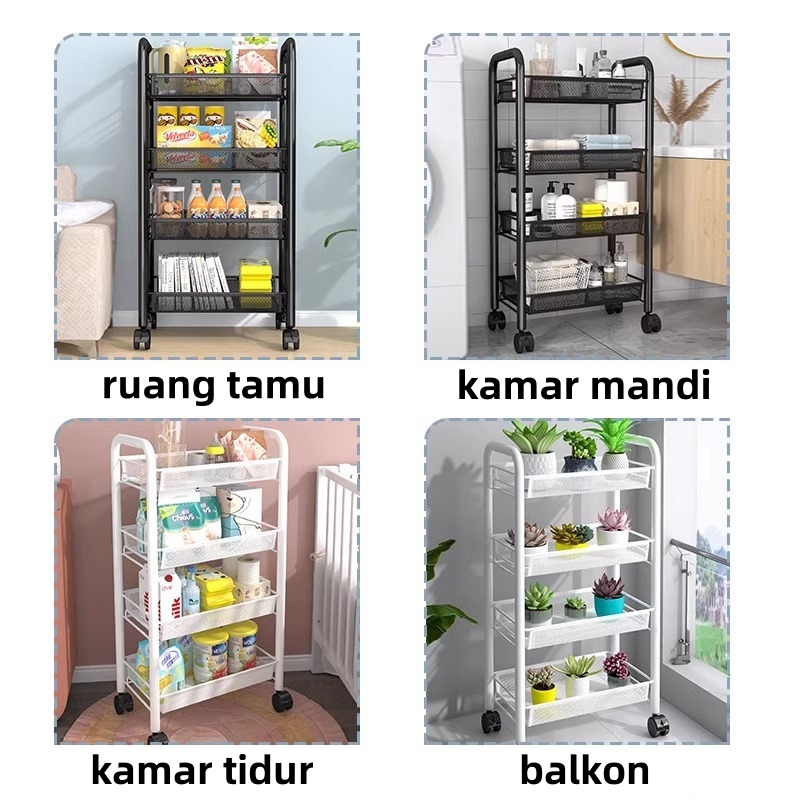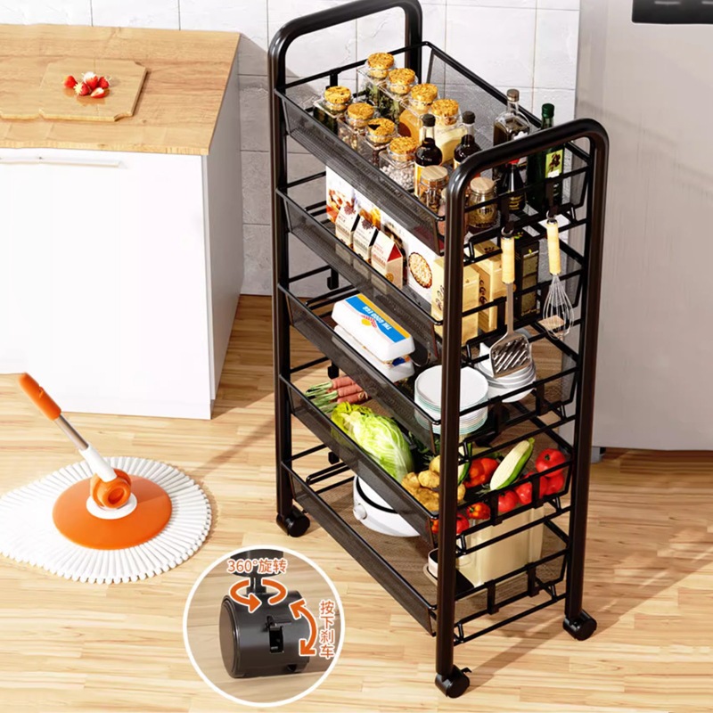 Rak Dapur Hitam Troli besi Rak Kamar Mandi Rak Troli Rak Susun Serbaguna Rak Dorong 3 4 5 Tingkat Rak Serbaguna Dengan Roda F59