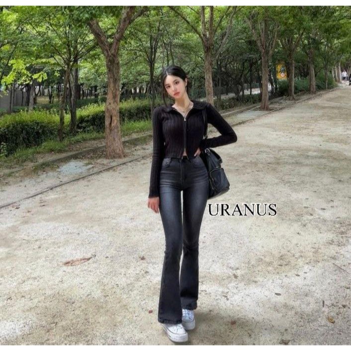 Highwaist Retro Cutbray Jeans Wanita Stretch & Loose