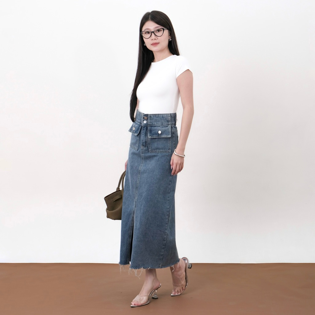 [LUXE.DLABEL] - 255 SKIRT | Rok Jeans Highwaist Wanita Jeans Wanita Polos Ripped Jeans Highwaist Skinny Jeans Highwaist Baggy