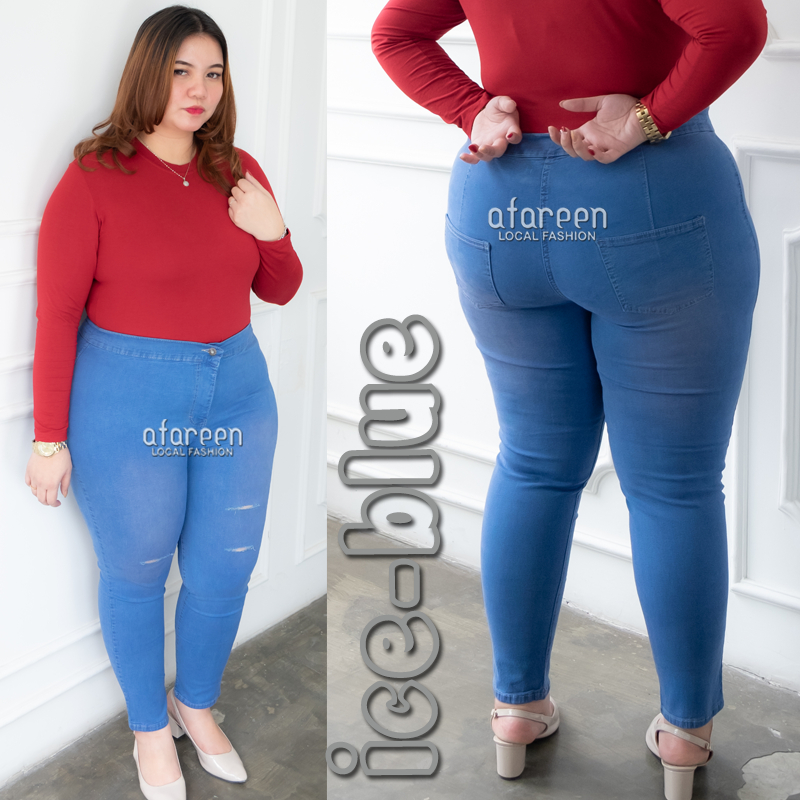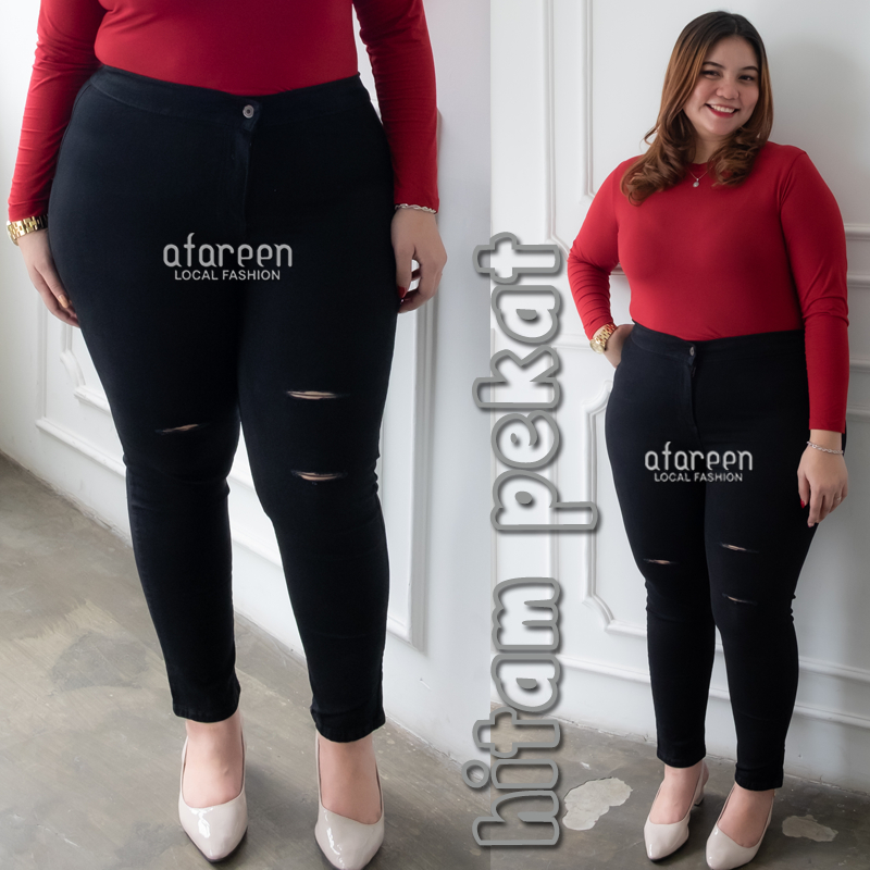 AFAREEN - HW Sobek Jeans Wanita Highwaist Sobek Tembus Super Jumbo Jeans HWS Big Size 35-43