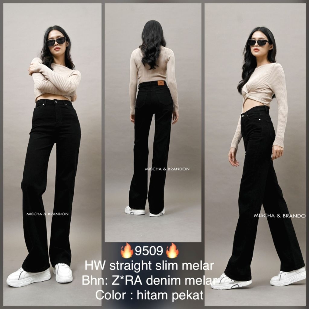 M&B Jeans Celana Jeans Panjang Wanita High Waist Straight Slim Stretch Melar