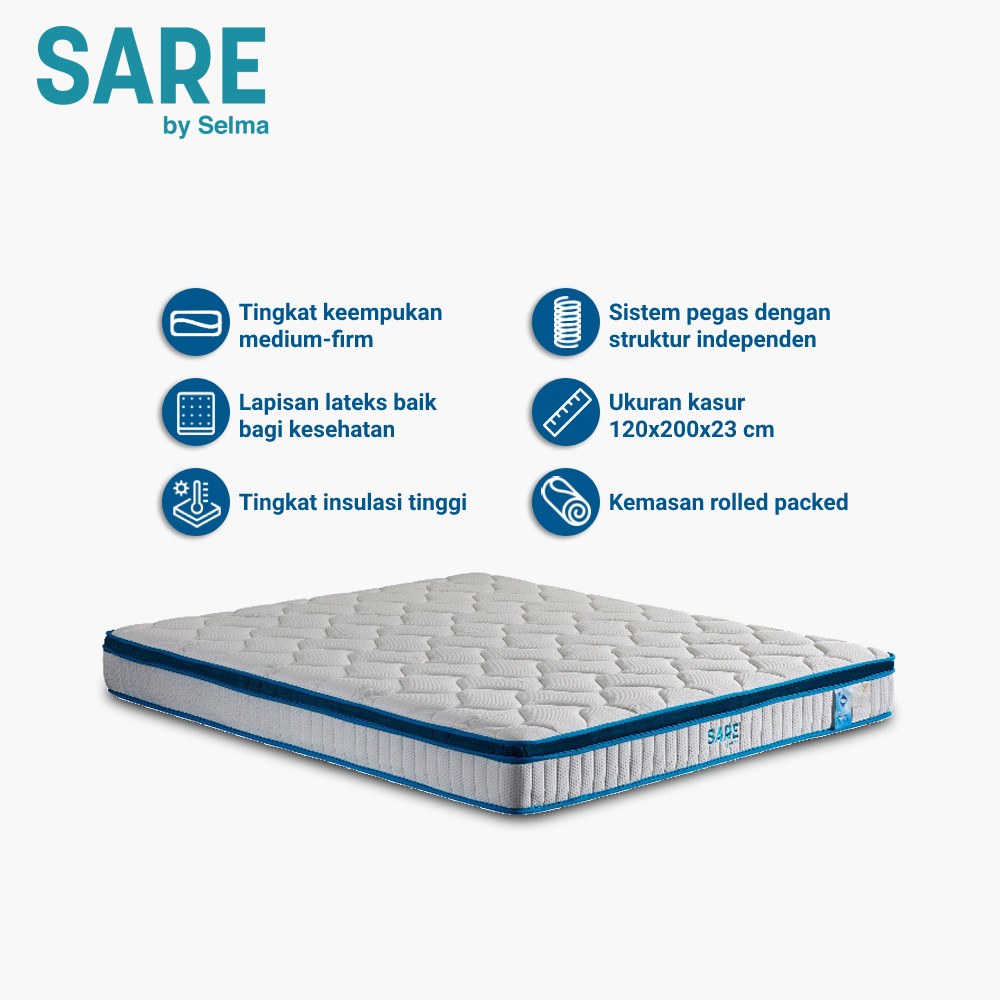 Selma 120X200X23 cm Sare Kasur Latex Pocket Springbed In Box Mattress Latex Matras Kasur Tidur Single Perlengkapan Kamar Tidur