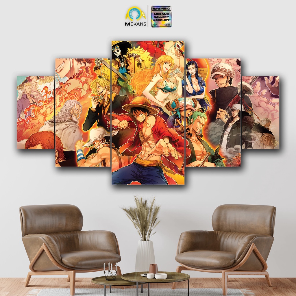 MEKANS 1 SET Pajangan Hiasan dinding ONE PIECE 5pcs Poster Kayu Wall Decor