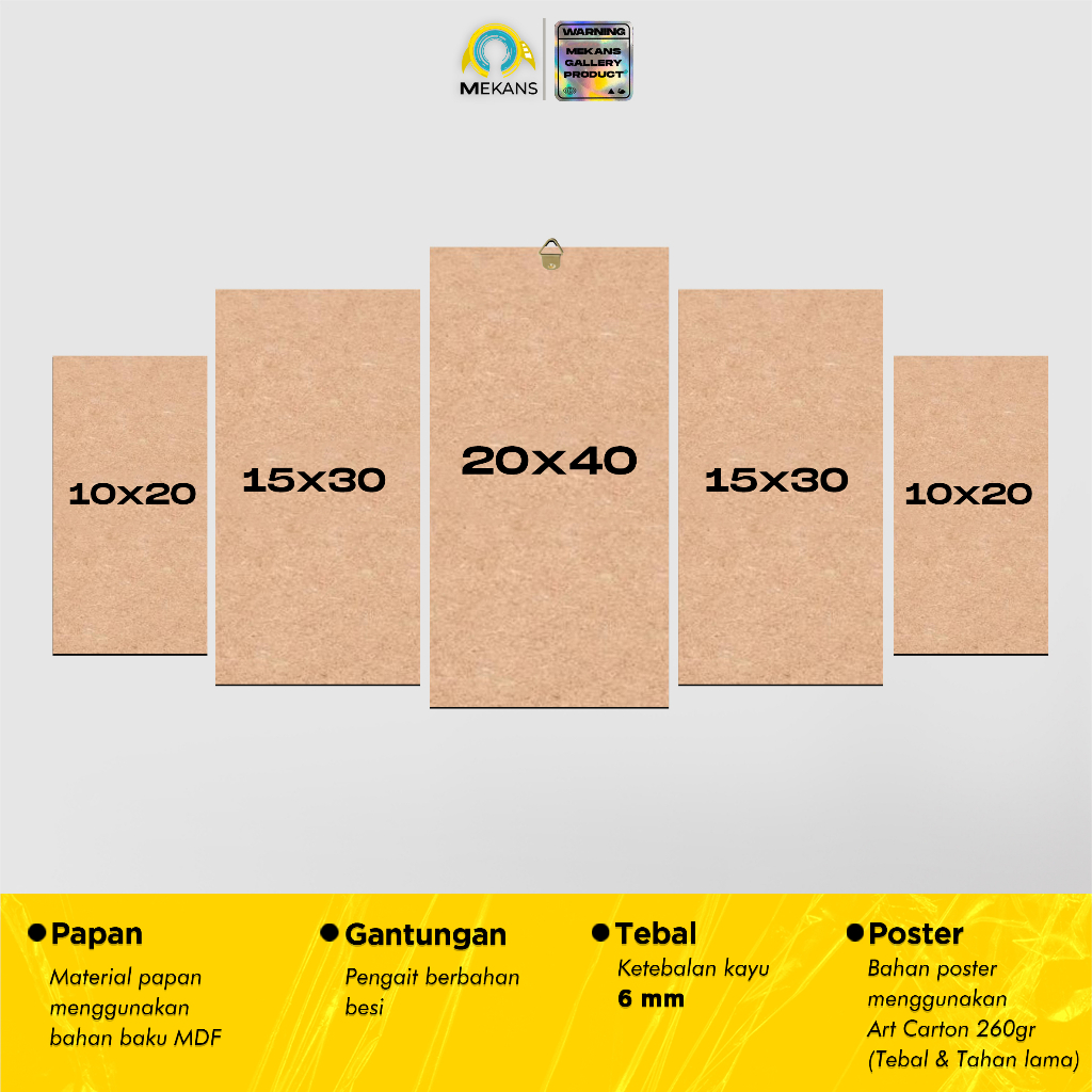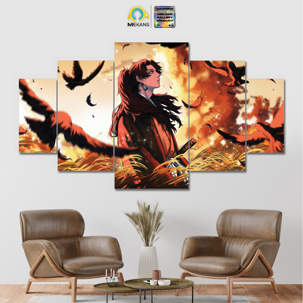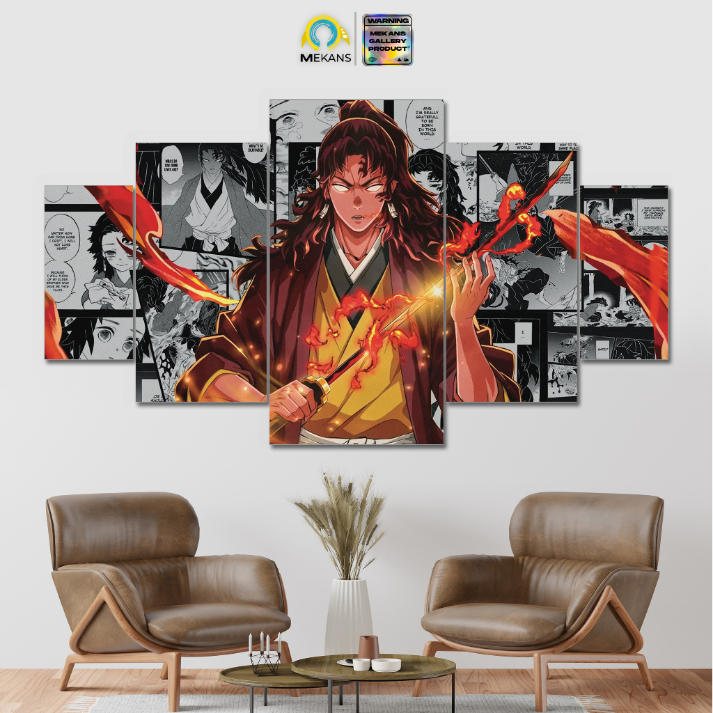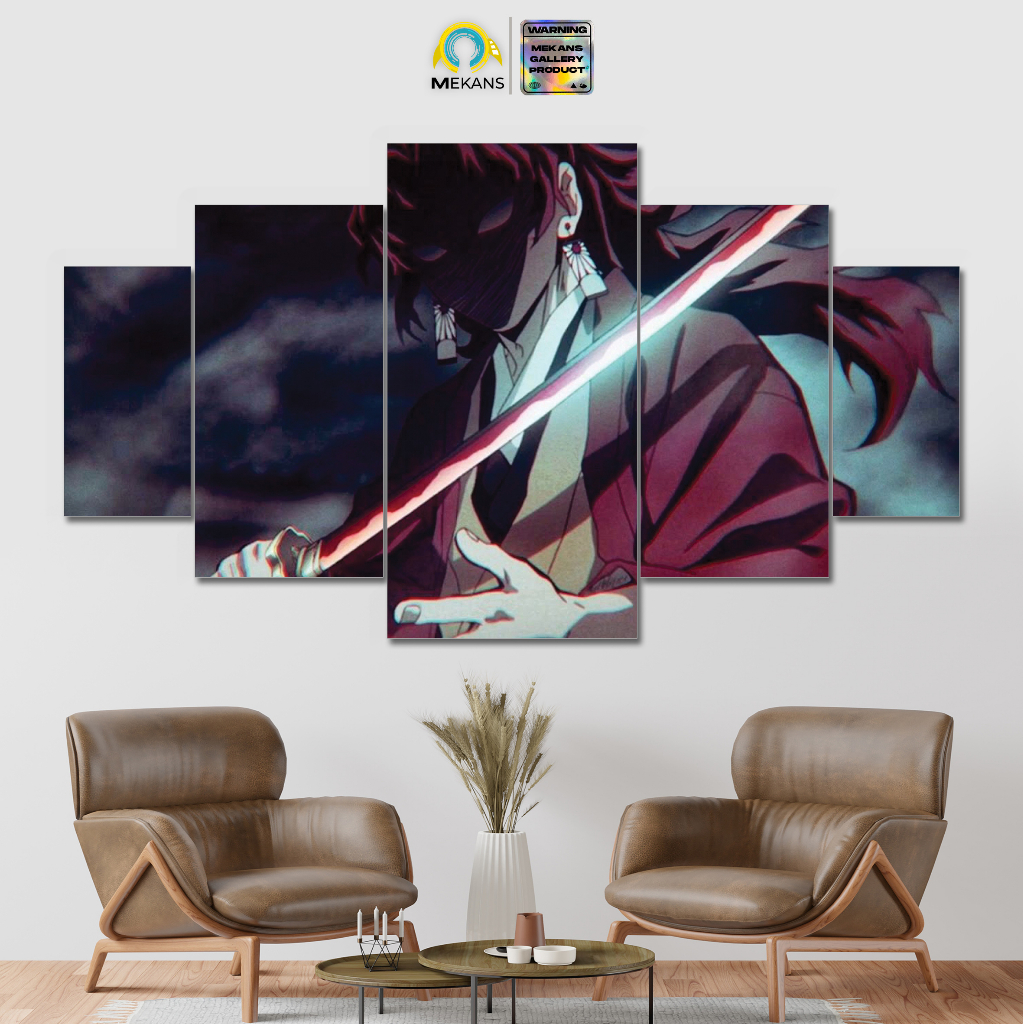 MEKANS 1 SET Pajangan Hiasan dinding DEMON SLAYER YORIICHI 5pcs Poster Kayu Wall Decor