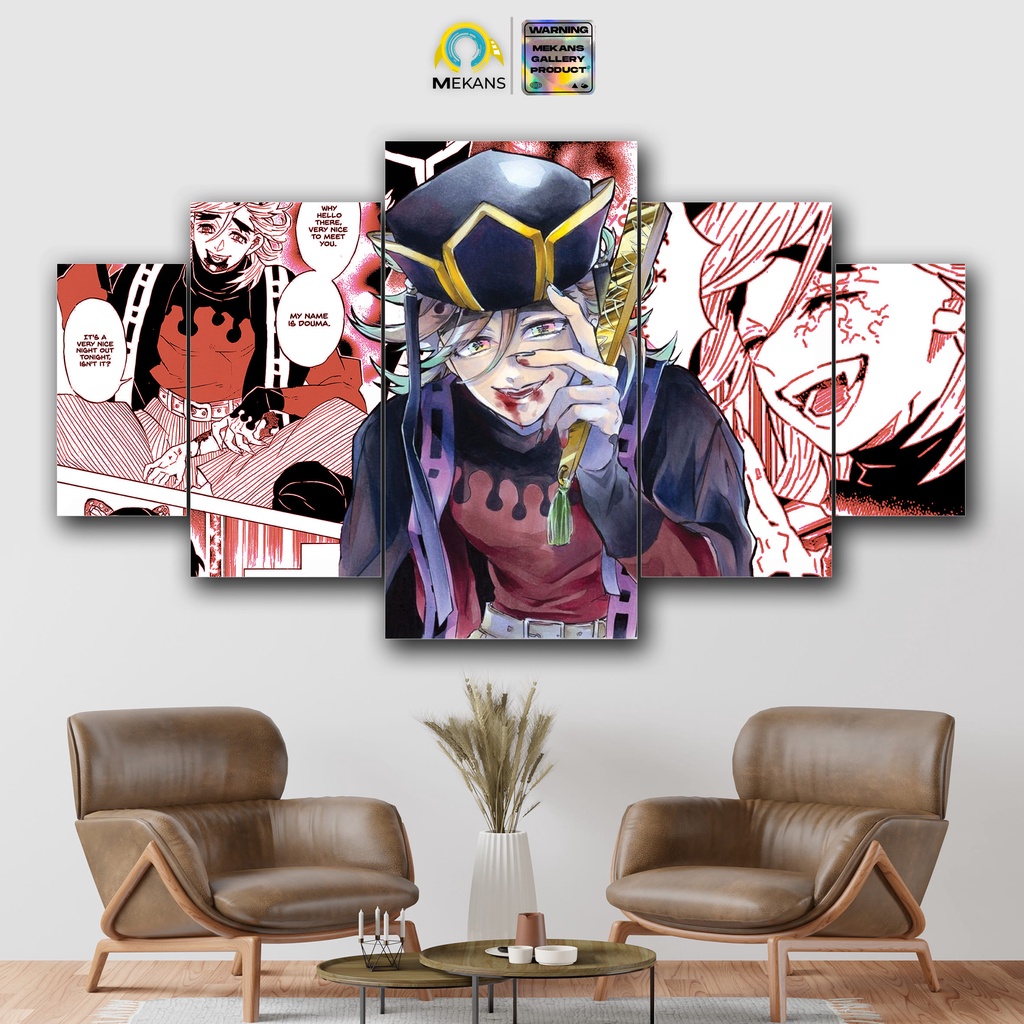 MEKANS 1 SET Pajangan Hiasan dinding DEMON SLAYER DOMA Poster Kayu Wall Decor 5pcs