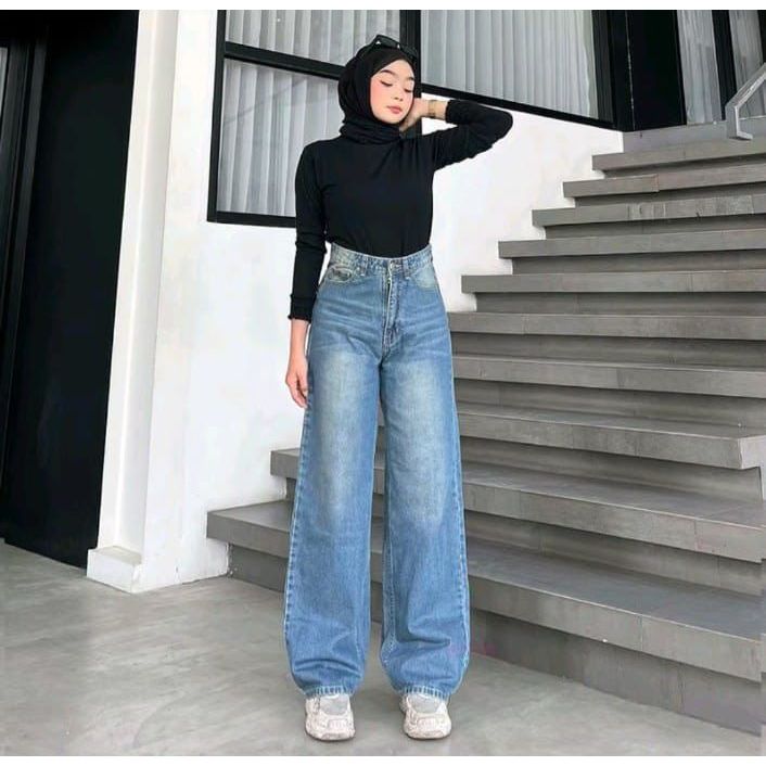 Celana Hitam Retro Highwaist Celana Jeans Wanita Loose Kekinian
