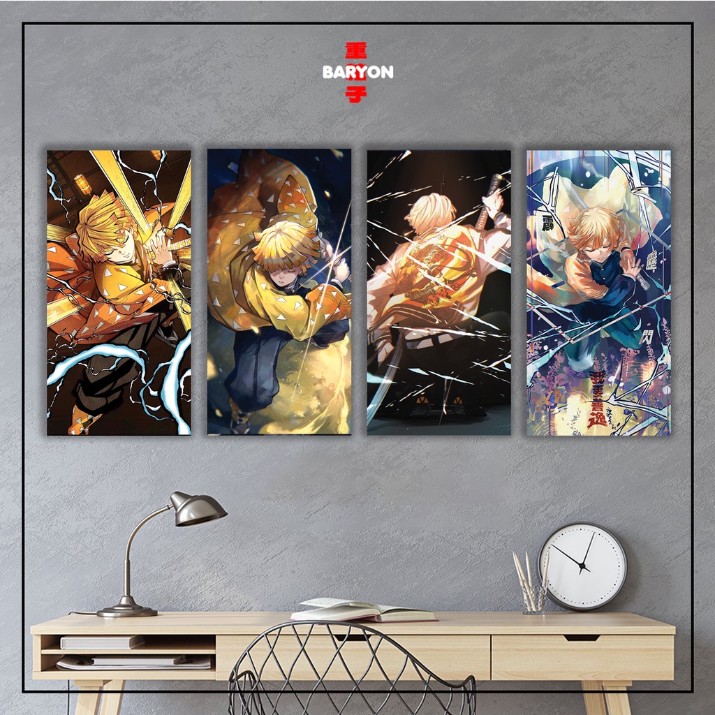 BARYON Wall Decor ZENITSU DEMON SLAYER Pajangan Poster Kayu Hiasan Dinding Kamar Tidur Wallpaper Anime 10 X 20 CM