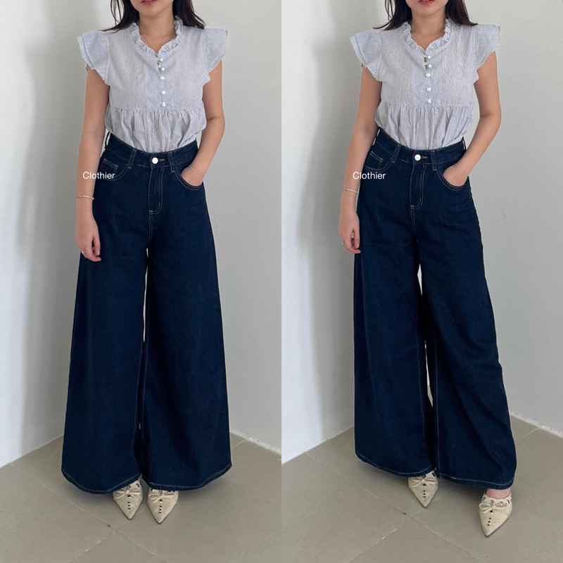 CLOTHIER | Carmine Baggy Jeans - Dark Blue Denim Celana Panjang Wanita