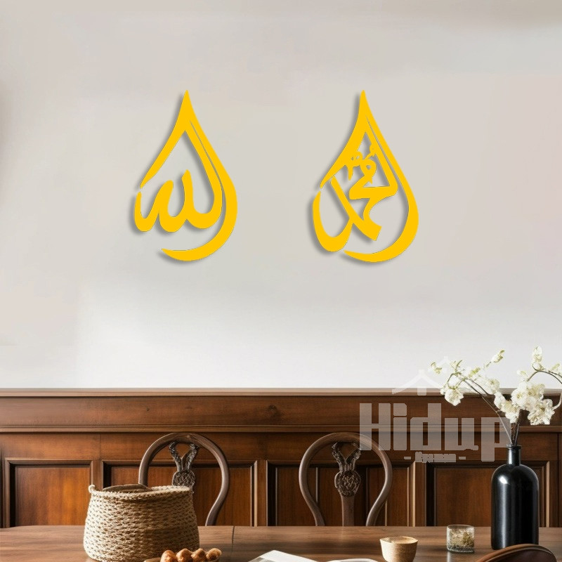 3Pcs Hiasan Dinding Pajangan Kaligrafi Kalimat Tauhid Lafadz Asma Allah Muhammad Akrilik Mirror