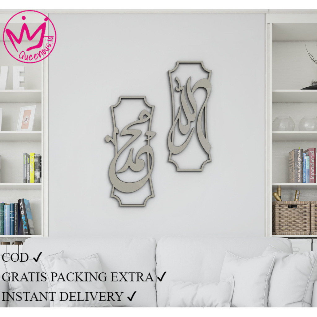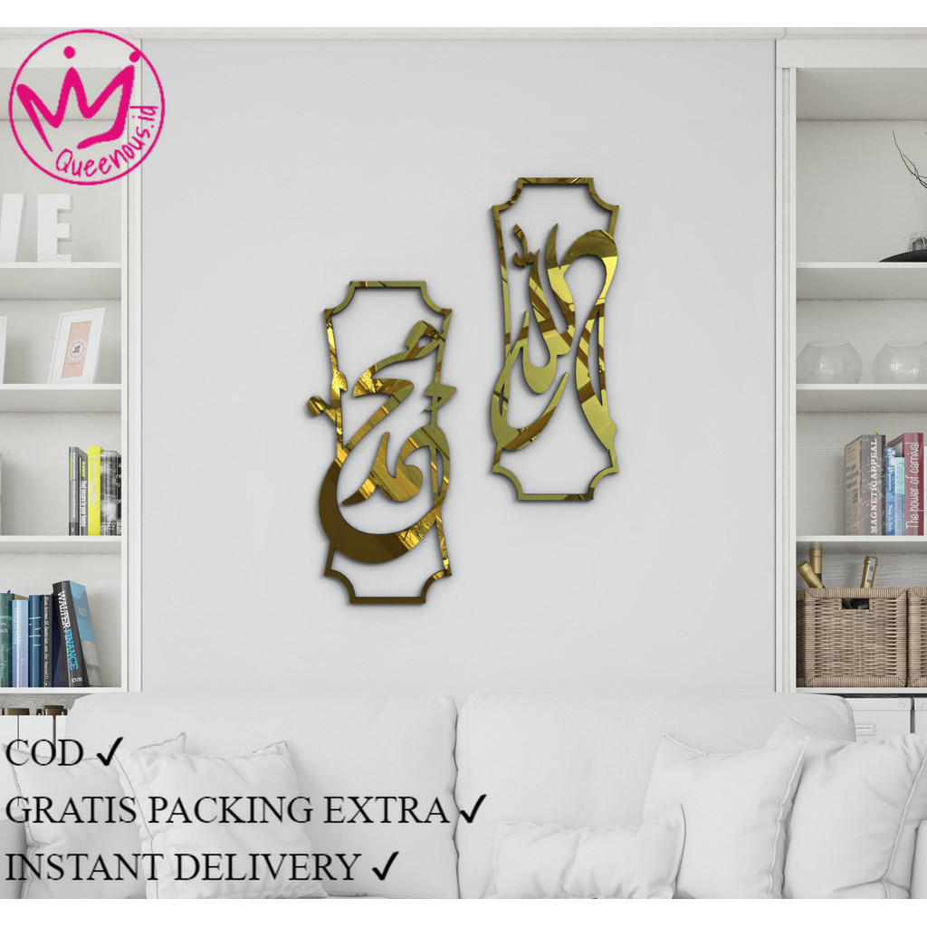 HARGA 1 SET Kaligrafi Allah Muhammad Hiasan Dinding Akrilik CUTTING LASERcustom sizeQUEENOUS ID