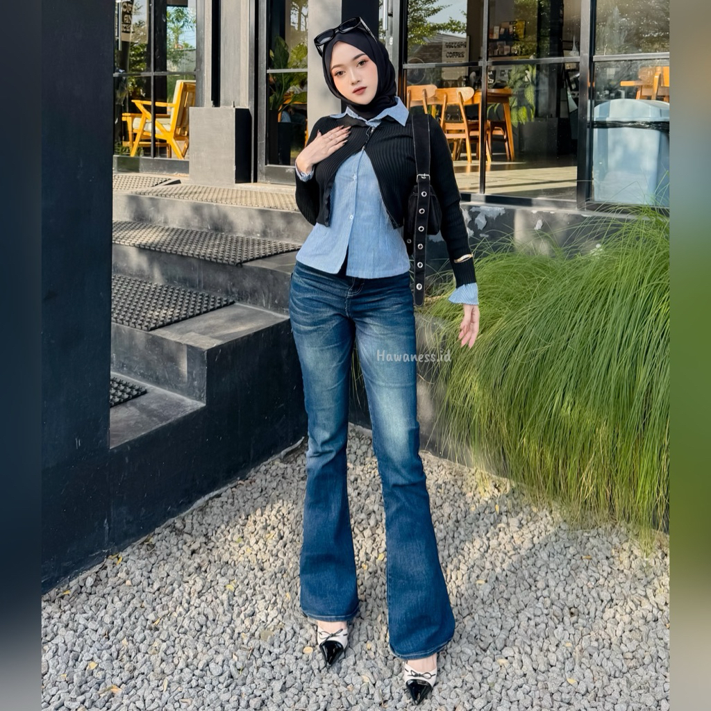 Highwaist Cutbray Jeans Retro 114 - Celana Jeans Cutbray Premium