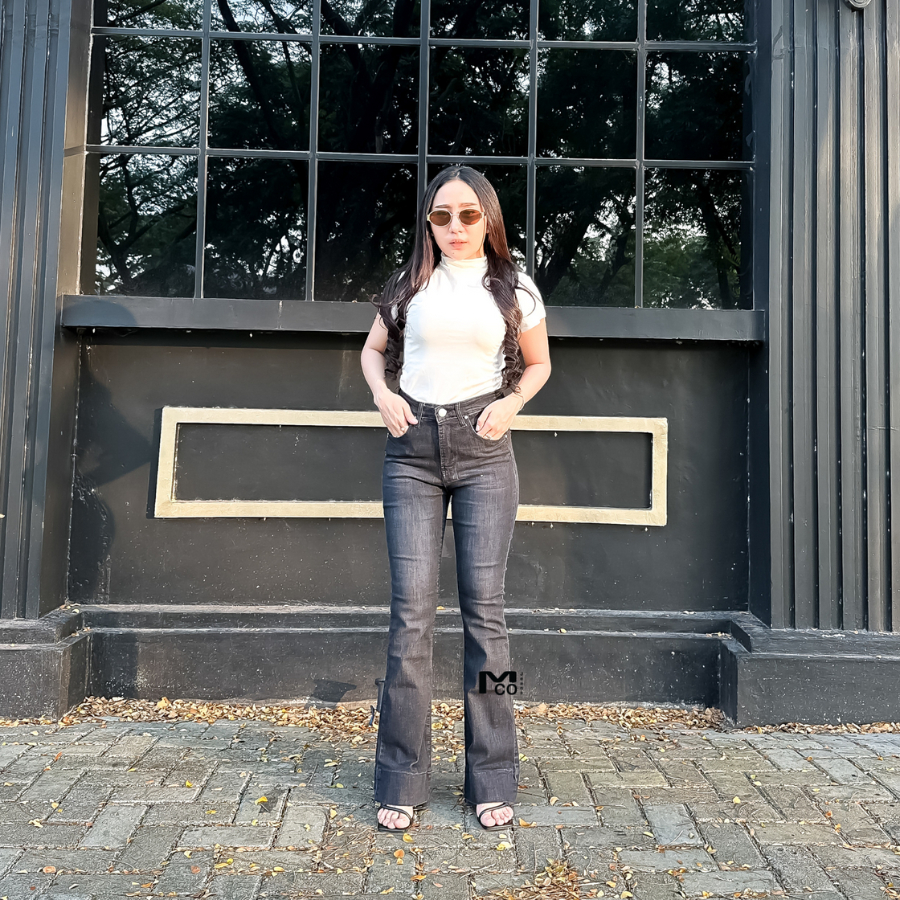 MCO JEANS - Celana Jeans Wanita - Monica Cutbray Kaki Tebal / Cutbray Highwait Panjang / Celana Jeans Wanita / Flare Jeans / Celana Jeans