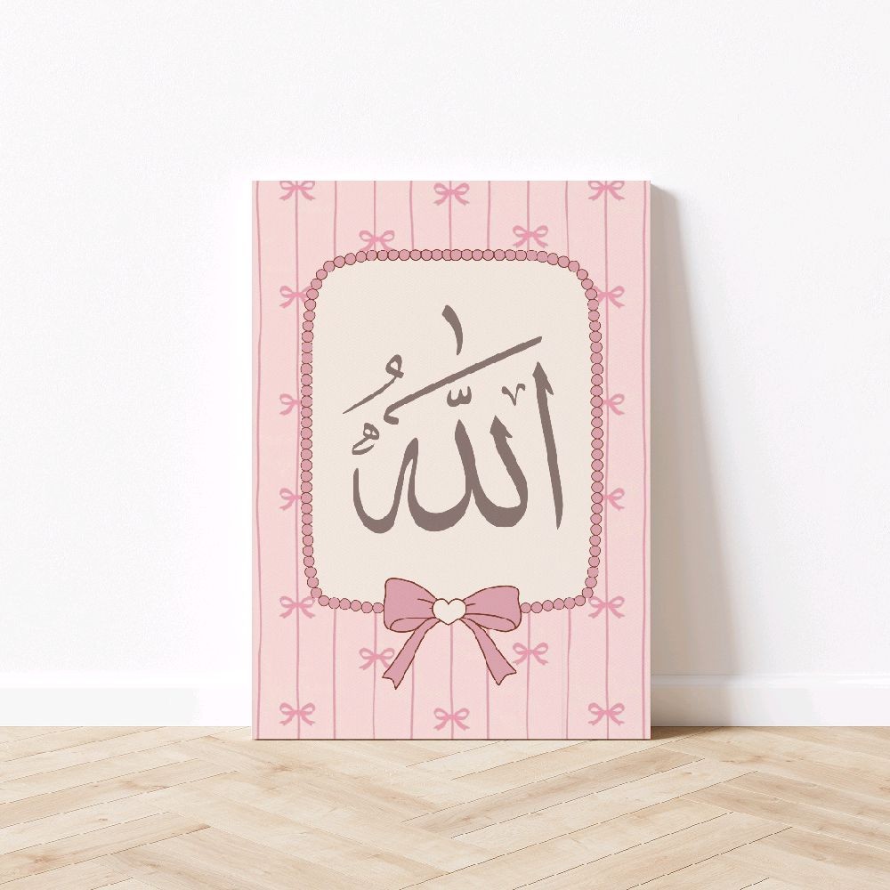 Hiasan Dinding Islami Kaligrafi ALLAHMUHAMMADAYAT KURSI Aesthetic Pink CoquetteHiasan Dinding Dekorasi Kamar Cewek Lucu Kawaii Hiasan Dinding Meja Poster Pastel Abstrak Wall Decor Frame