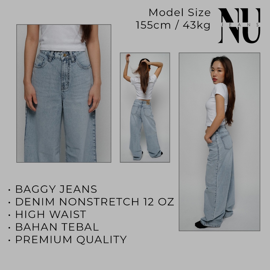 NUJEANS – CELANA JEANS PANJANG WANITA BAGGY JEANS HIGHWAIST PREMIUM JEANS NON STRETCH SNOW BLUE – ADENA 1551