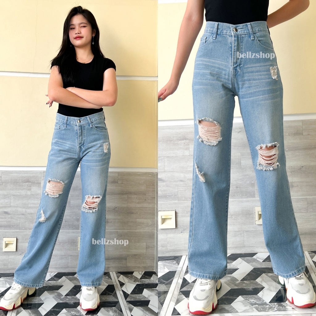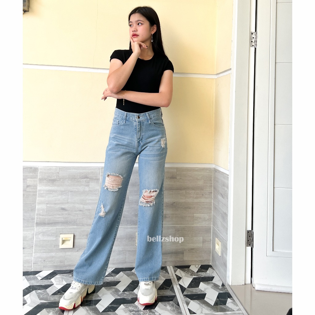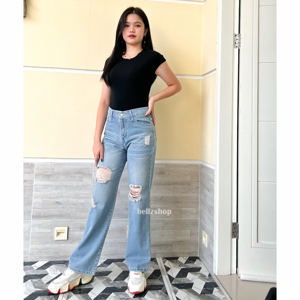 Celana Kulot Highwaist Jeans Ripped Wanita Panjang Sobek Tembus Premium Adeline Size 27 sd 30