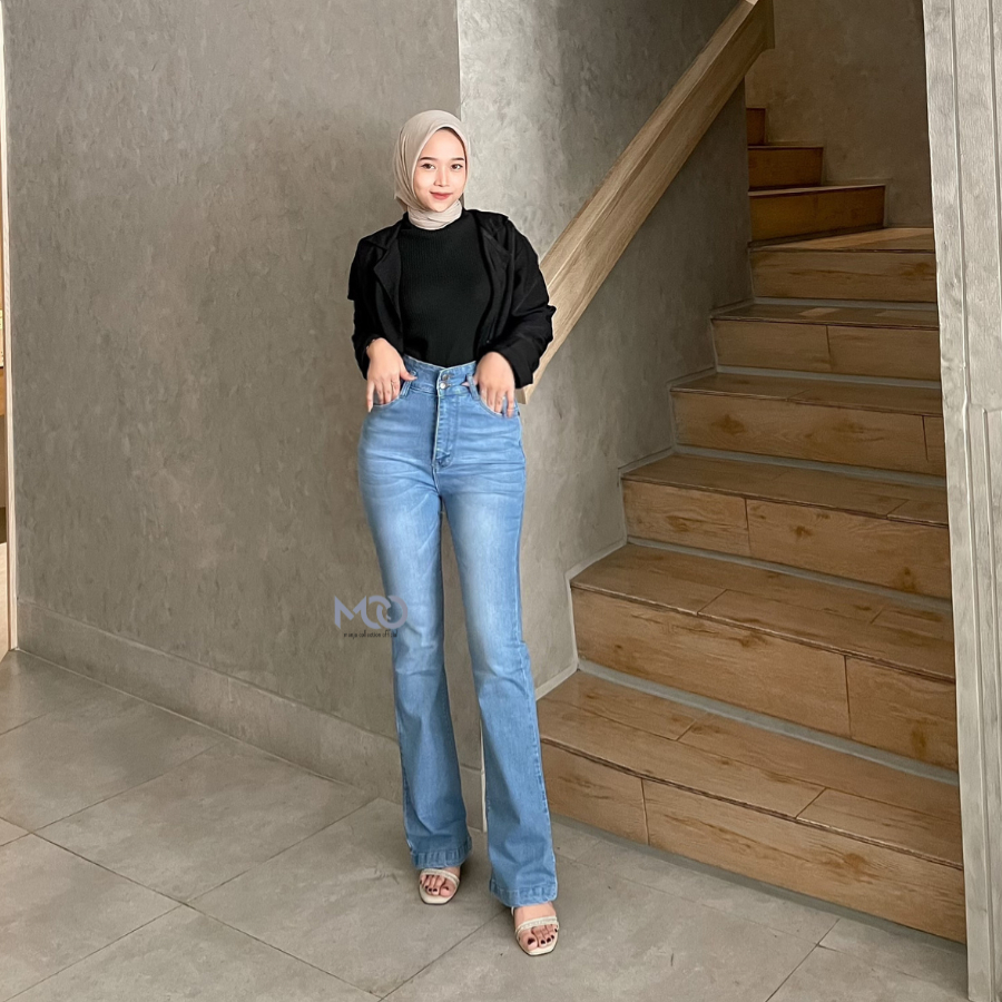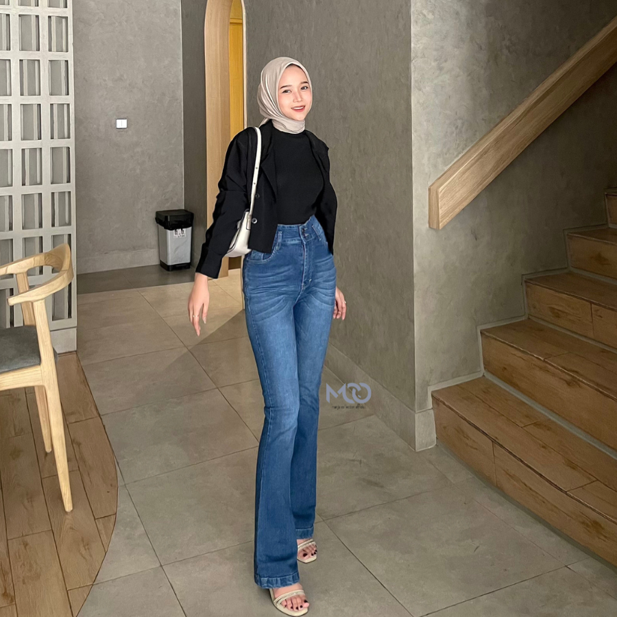 [MCOJEANS] HW CUTBRAY LIVY LONG PANTS JEANS STRETCH DARK BLUE KANCING 2 BOOT CUT