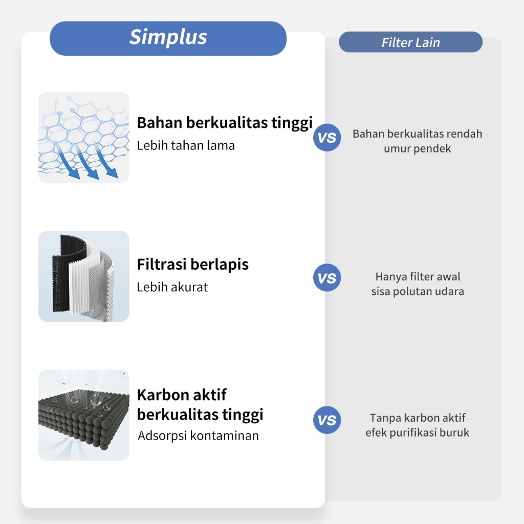 Simplus Air Purifier Filter HEPA H11 dengan 3 L4ppisan Filtrasi Progresif 004
