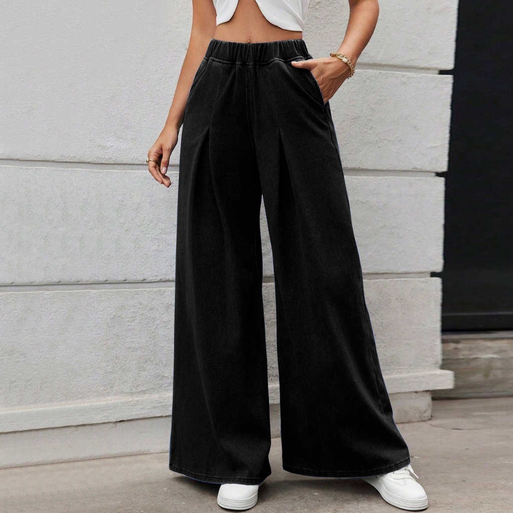 Jeans Baggy Style Cutbray Wanita Wide Leg Vogue Denim Pants Perempuan Pinggang Getah Straight Cut Loose Jeans