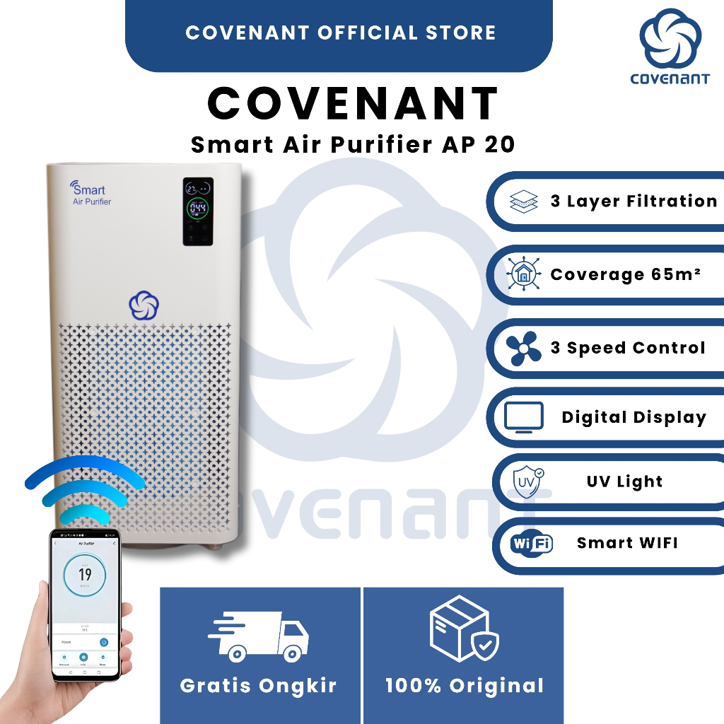 Covenant Smart Air Purifier AP 20 WIFI True HEPA 13 Pembersih Udara Ran Kamar Rumah Kantor