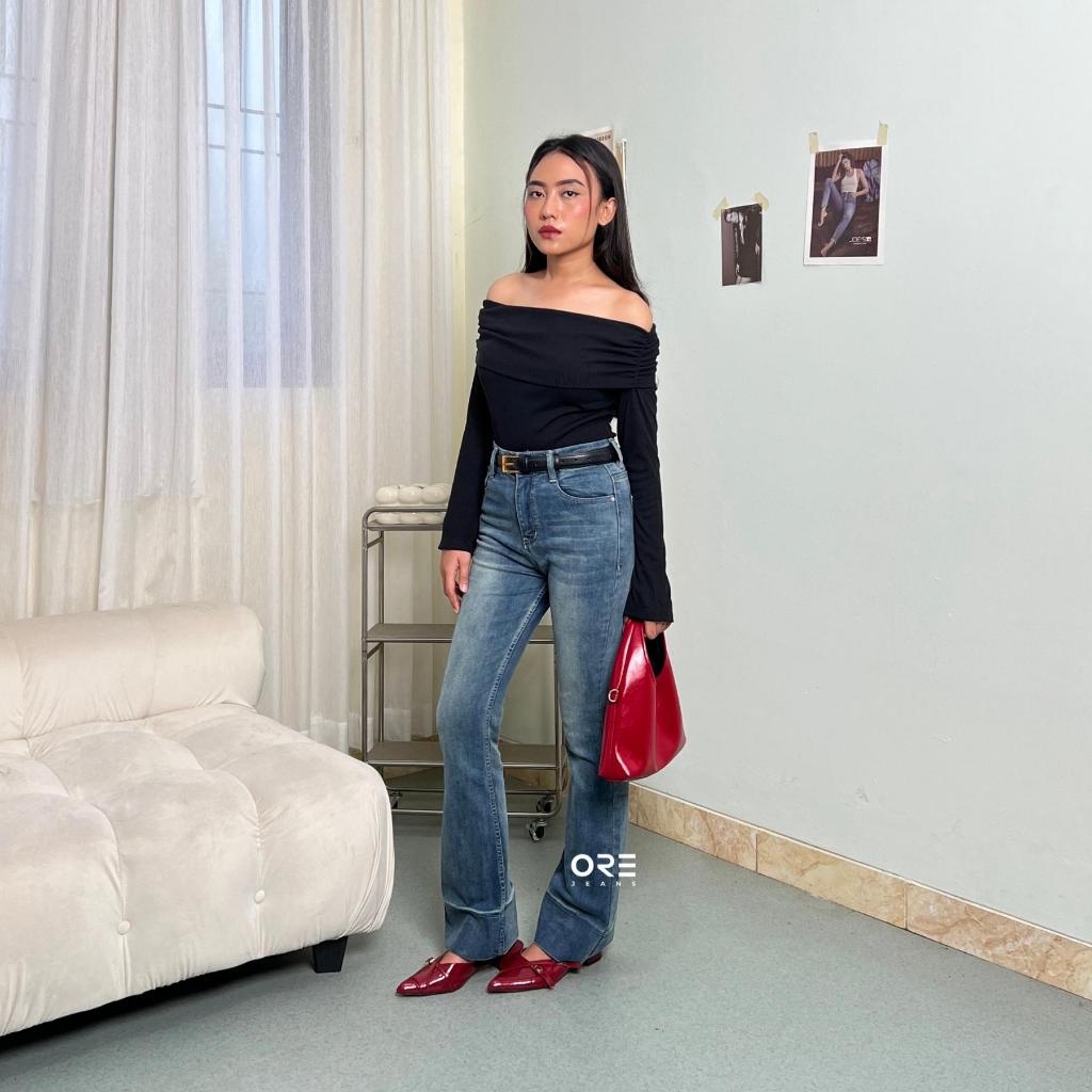 ORE - Jennie Cutbray Jeans Highwaist Lipatan Kaki Besar Jeans Strecht