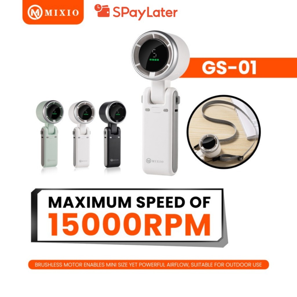 Original authentic MIXIO GS 01 Kipas Angin Turbo Strong Portable Handheld Rechargeable Mini Fan Lipat High Speed 15000RPM