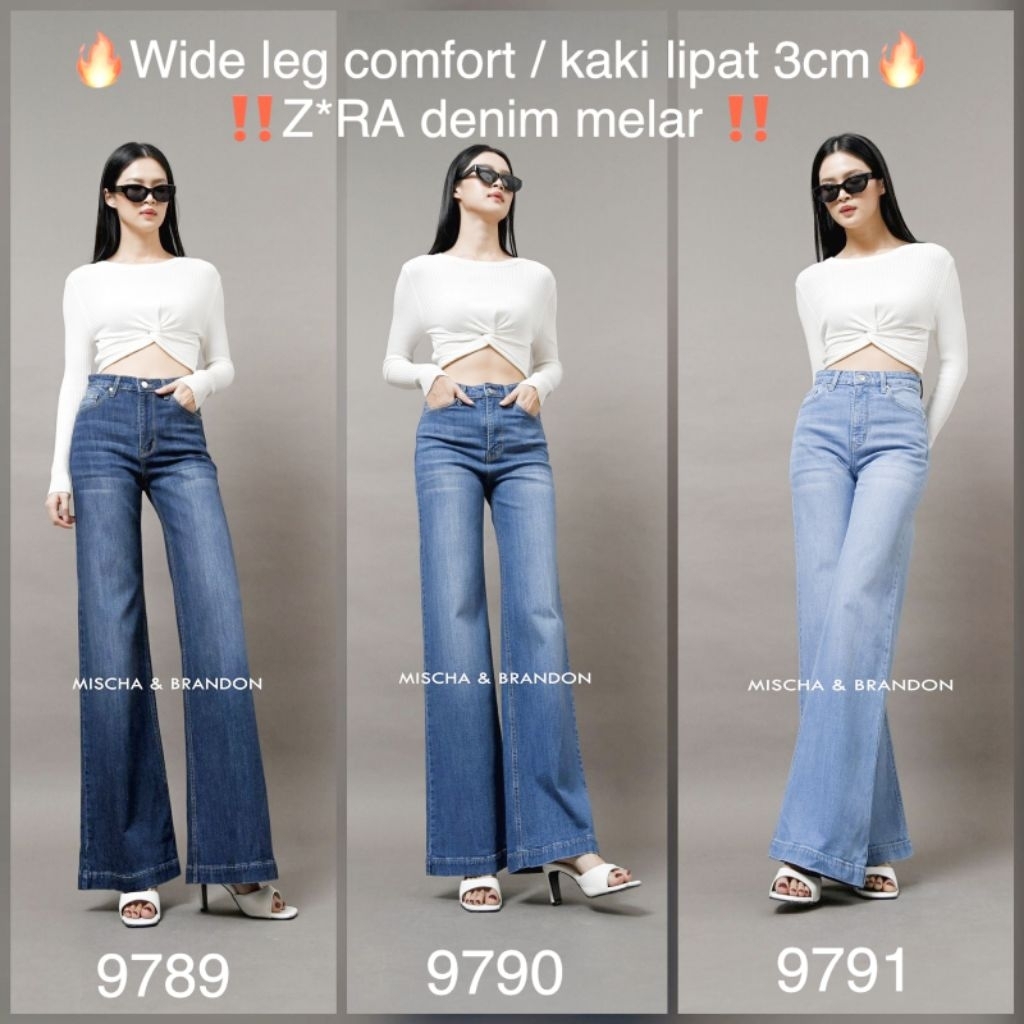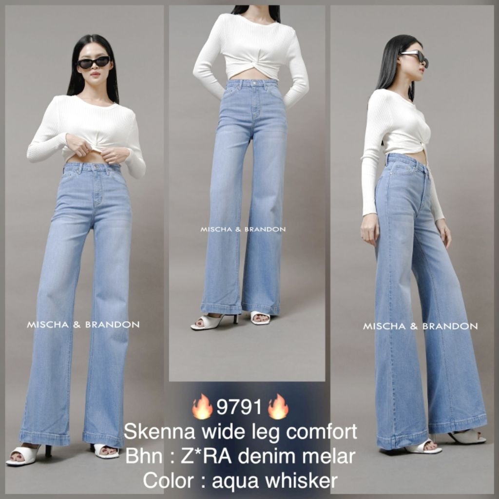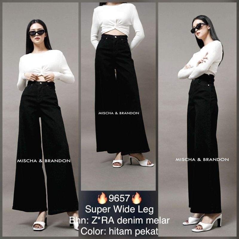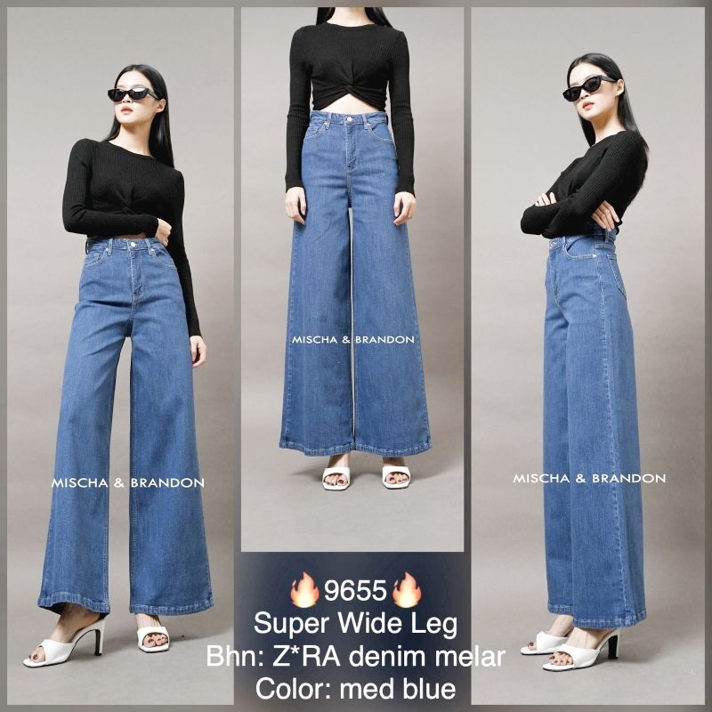 M&B Jeans Celana Kulot Jeans Wanita Stretch Super Wide Leg