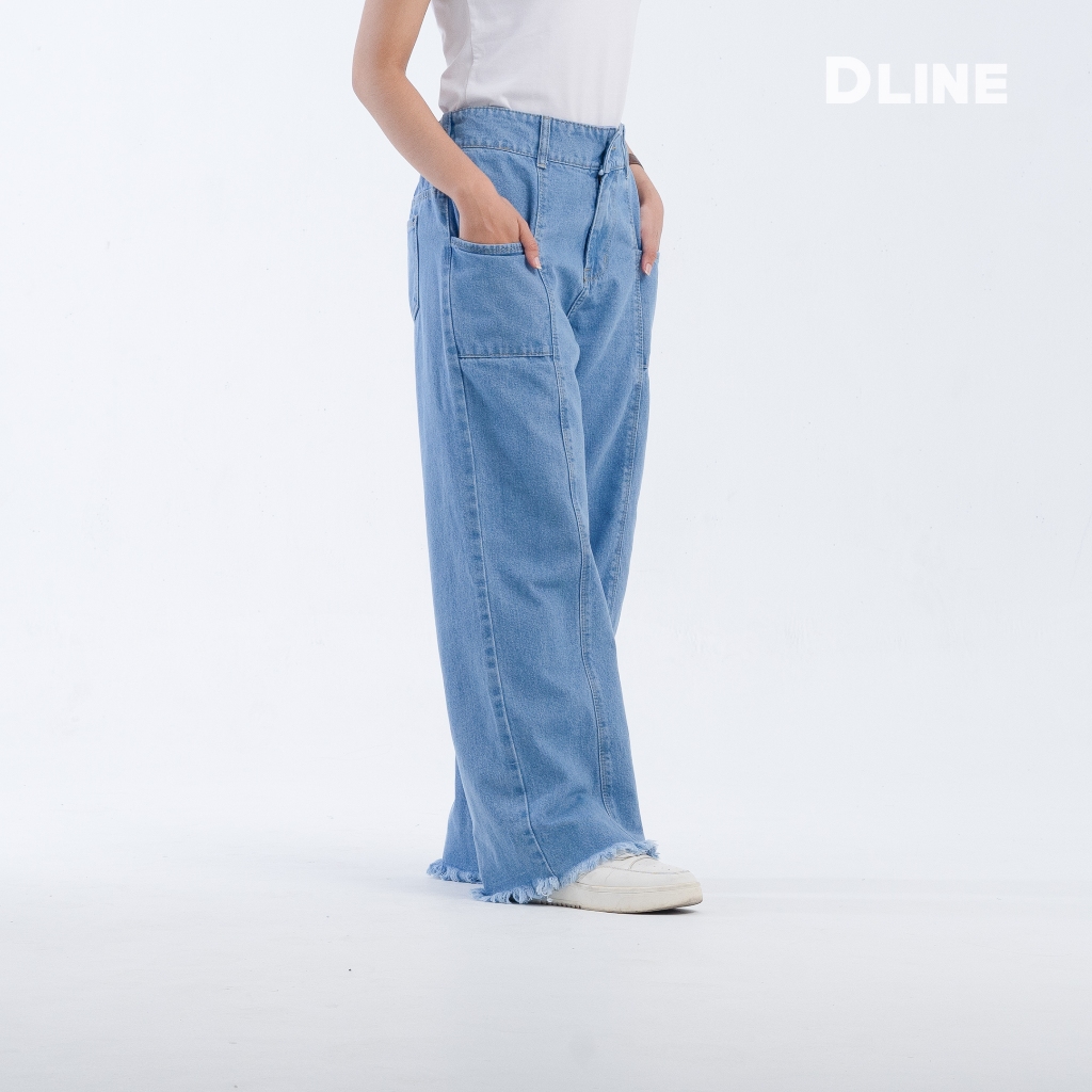 DLINE Celana Kulot Jeans Panjang Rawis Wanita Pinggang Belakang Karet Audrina Jeans