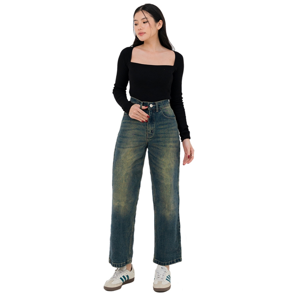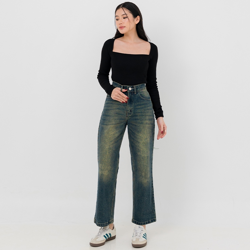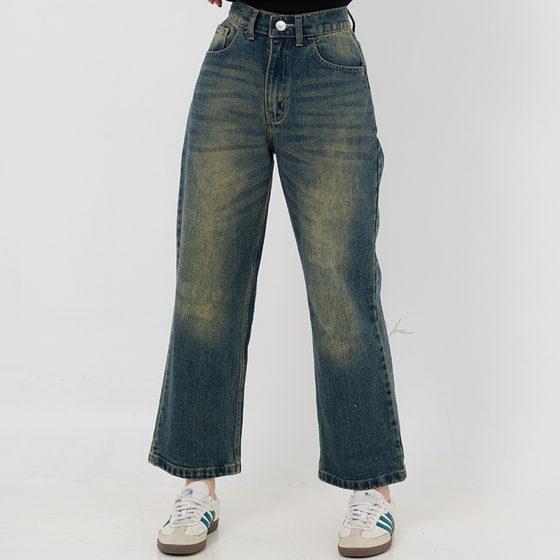 My LaVra Celana Loose Jeans Wanita Highwaist Retro Yellow Tint
